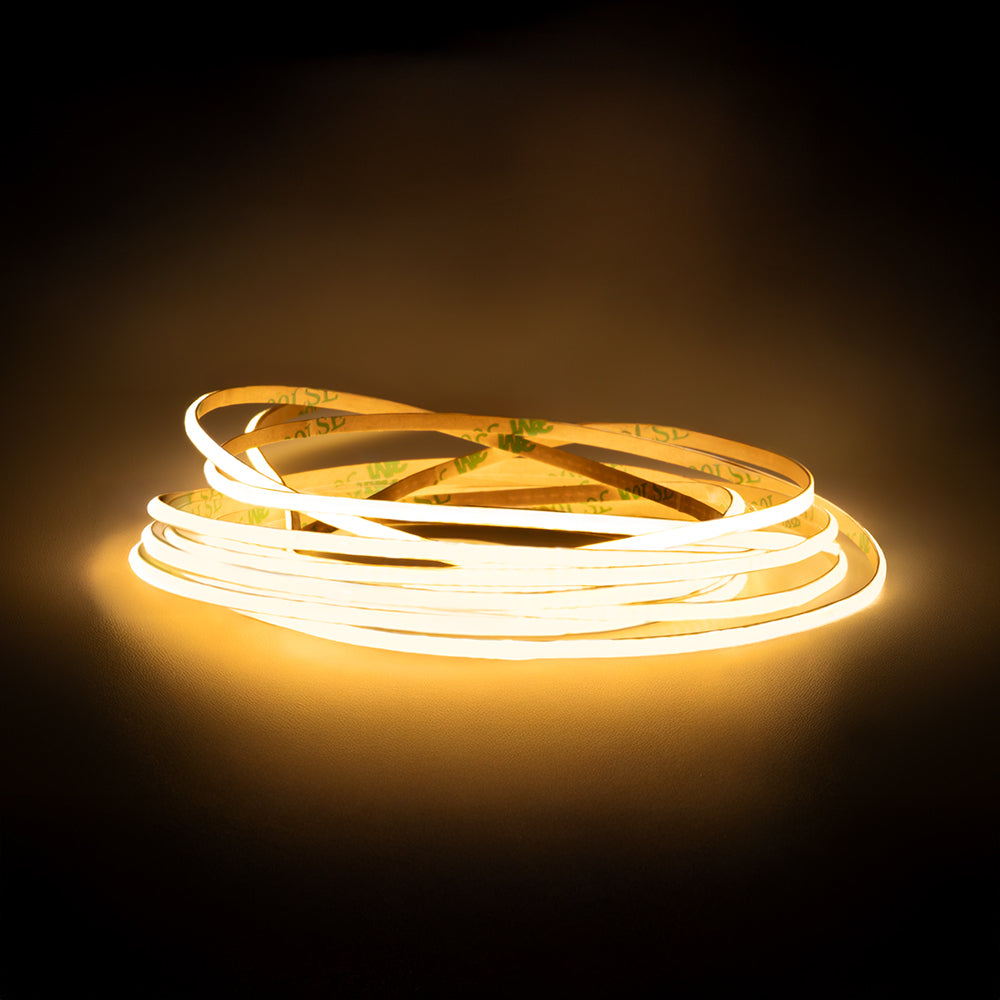 A Fita LED COB Slim 12V da Blumenau Iluminação oferece alta performance e um design ultrafino para projetos modernos e sofisticados. Com apenas 3mm de largura, ela é perfeita para aplicações discretas, garantindo um efeito luminoso contínuo e sem pontos visíveis.