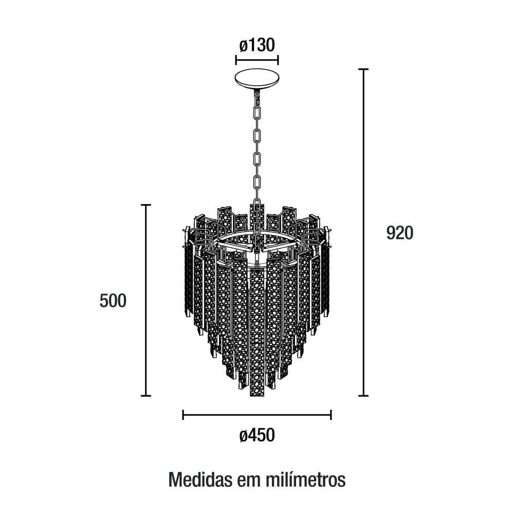 Os detalhes do seu design o tornam ideal para quem busca luxo e sofisticação. As placas de vidro desenhado transmitem um ar moderno para as decorações clássicas. A corrente com acabamento em veludo, junto à